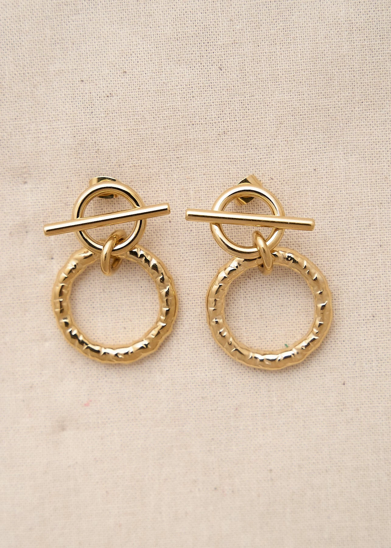 – Boucles d’oreilles puces anneau batônnet avec cercle martelé