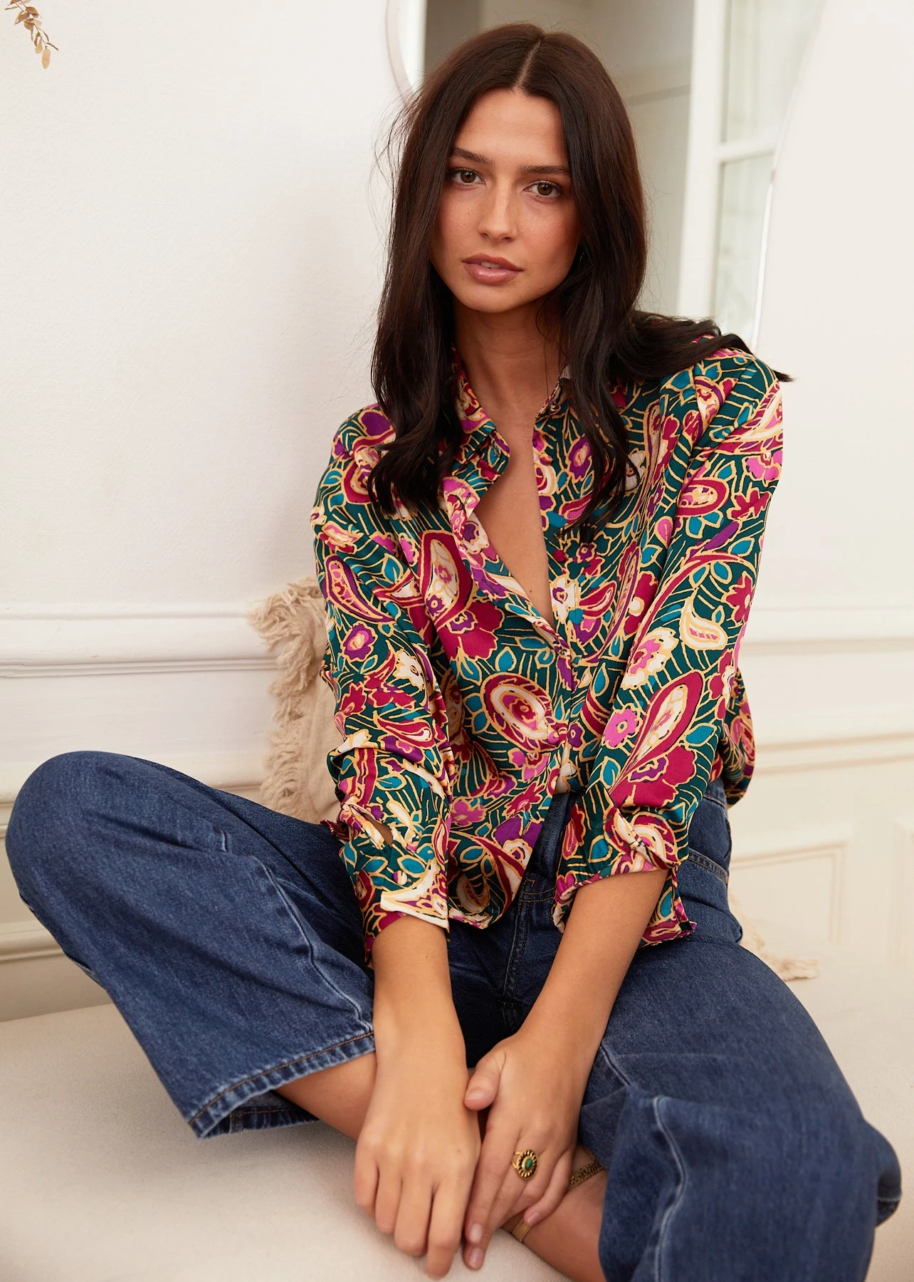 | Couleur | Imprimé Vert Rose Beige – Chemise Ambre |