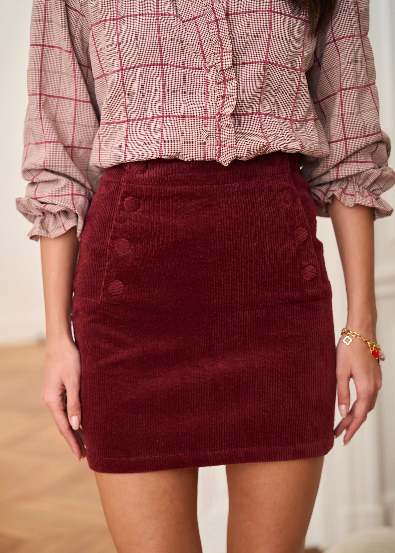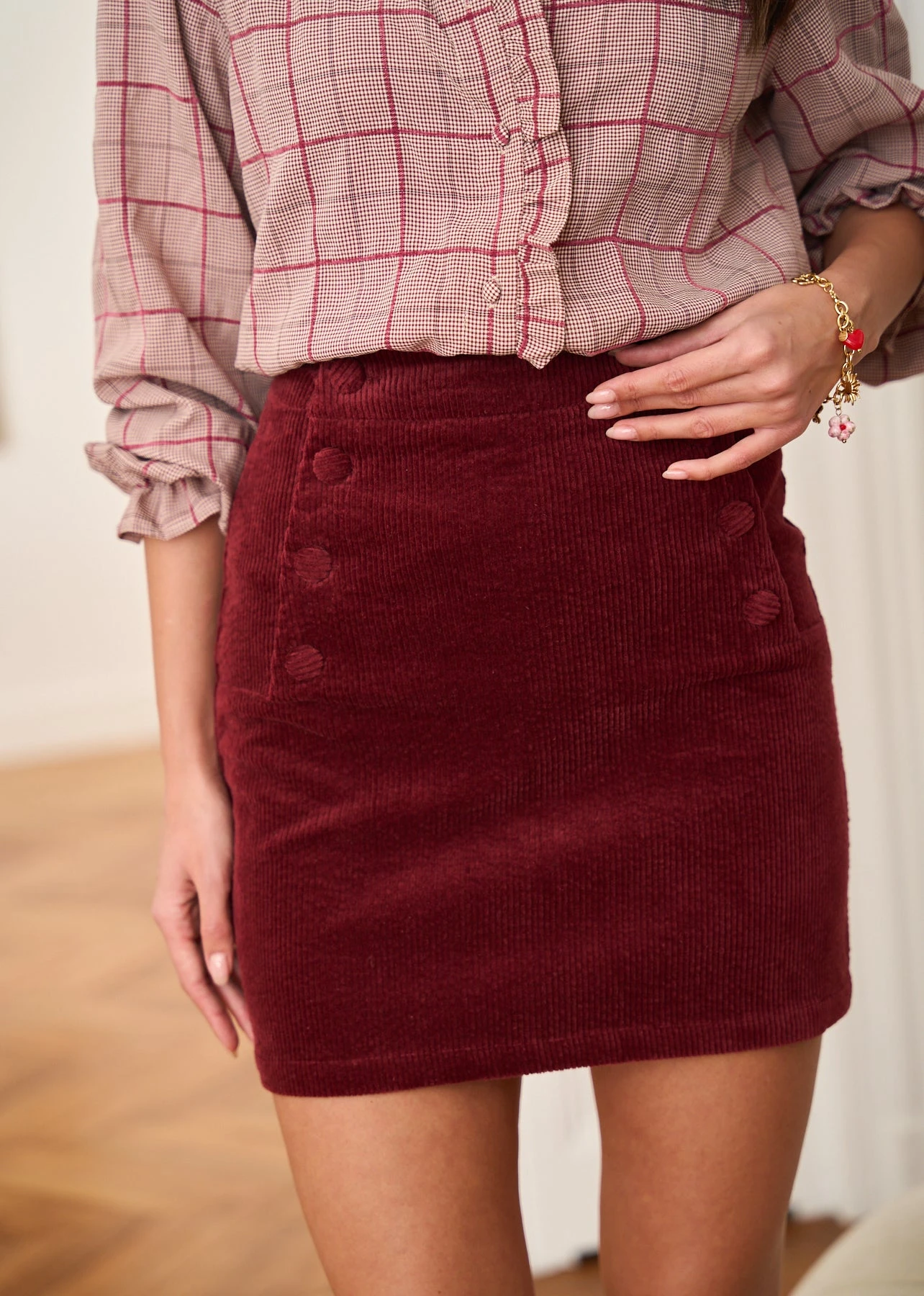 – Jupe courte en velours côtelé