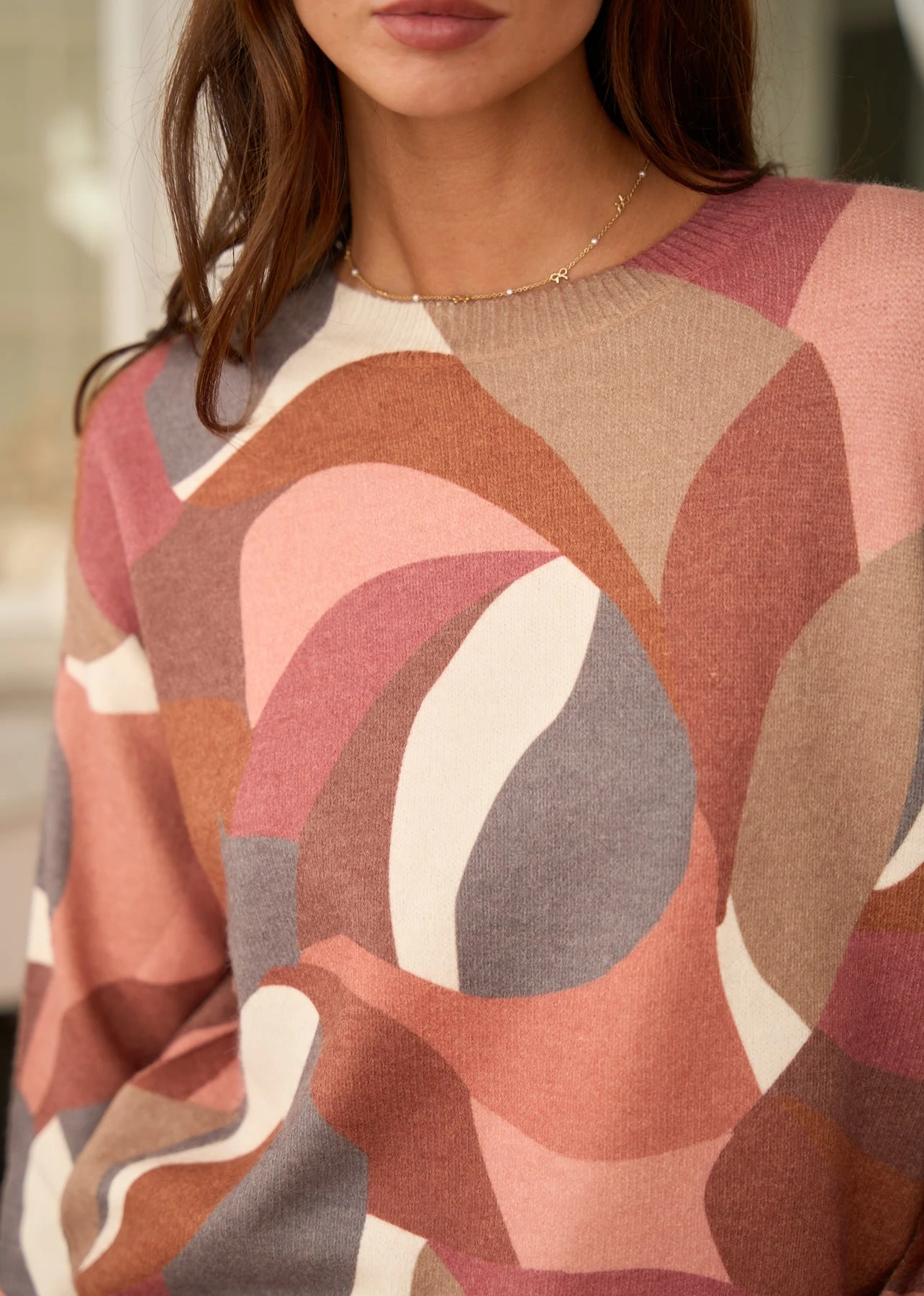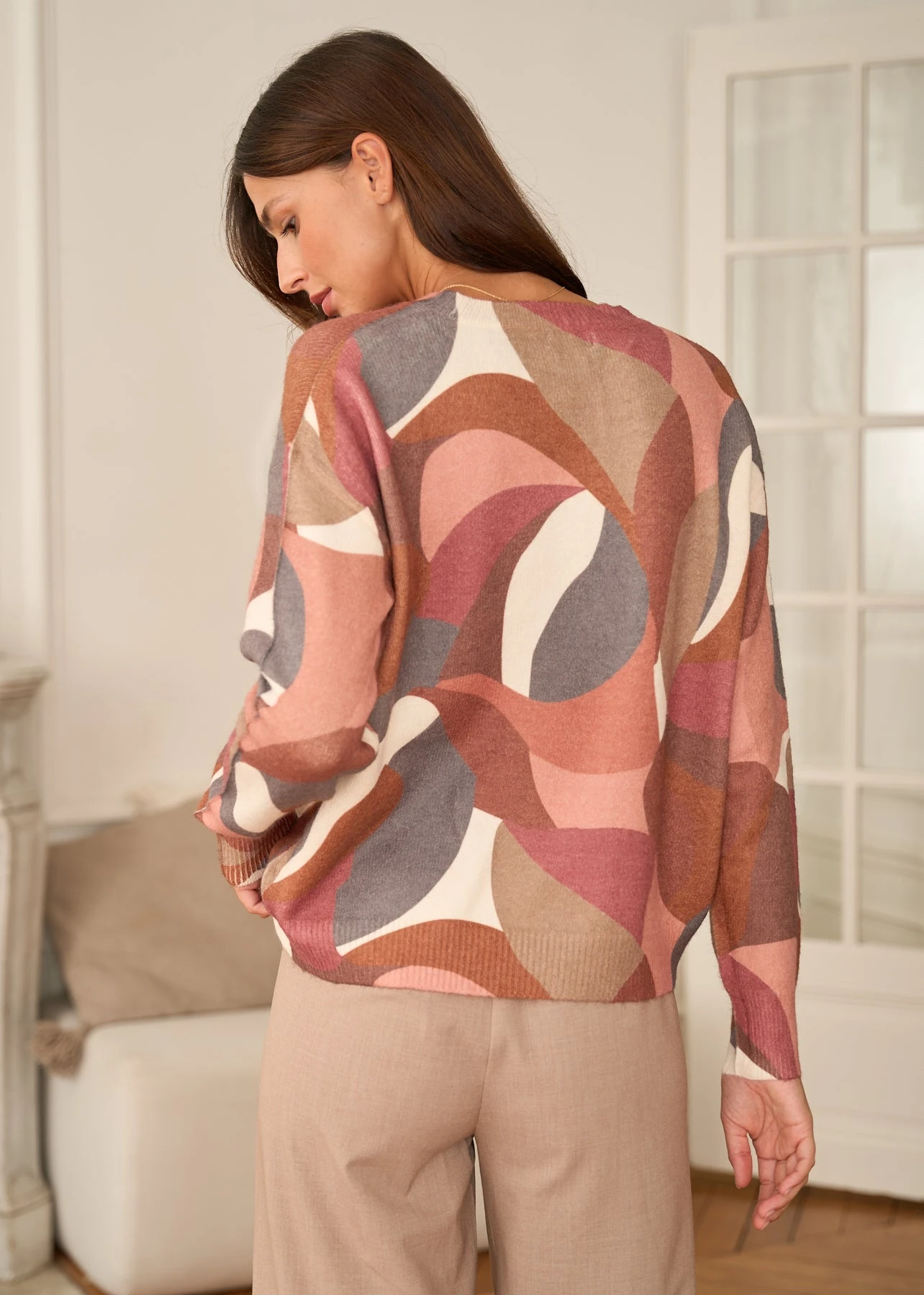 | Couleur | Imprimé Rose Camel Rouille – Pull Noa |