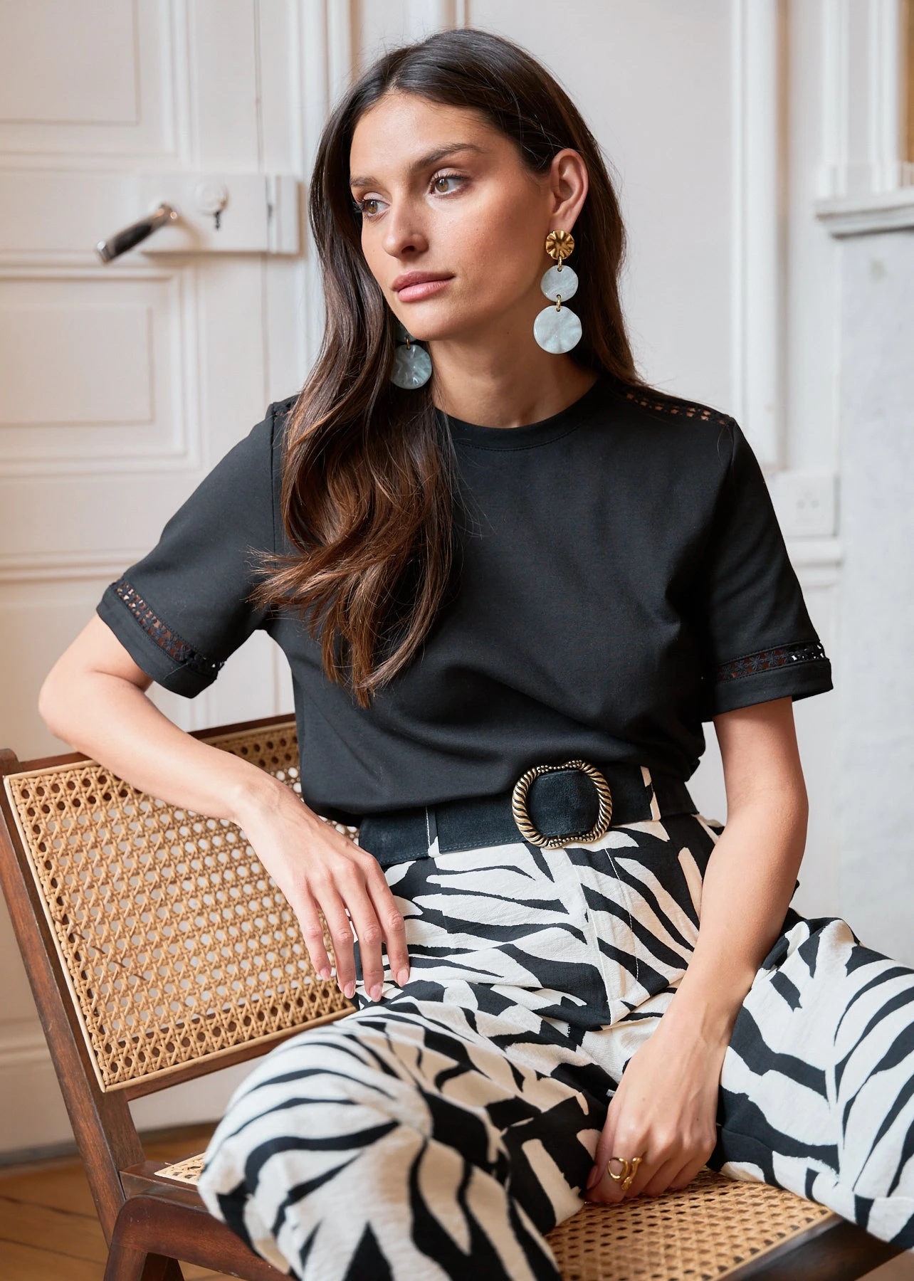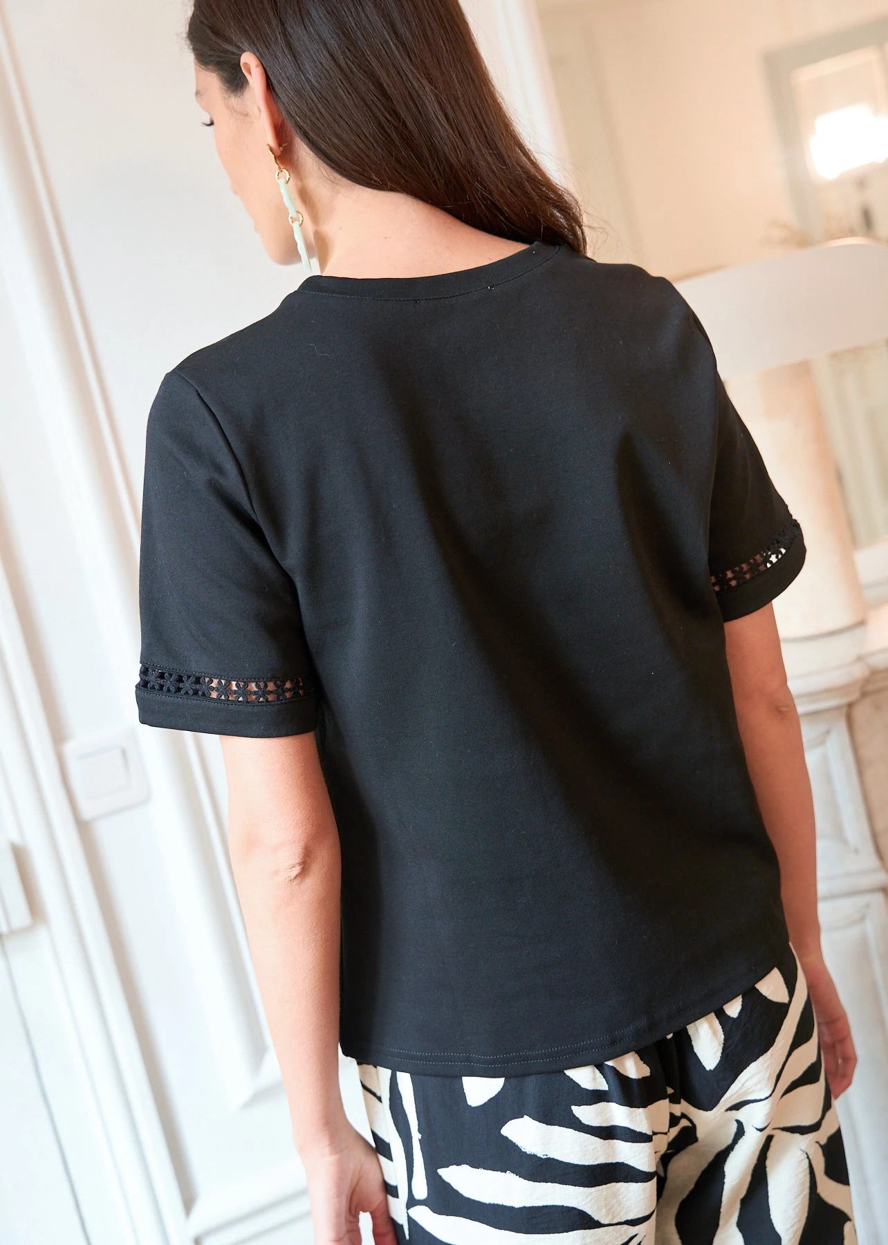 – Détails en dentelle aux épaules et aux manches
