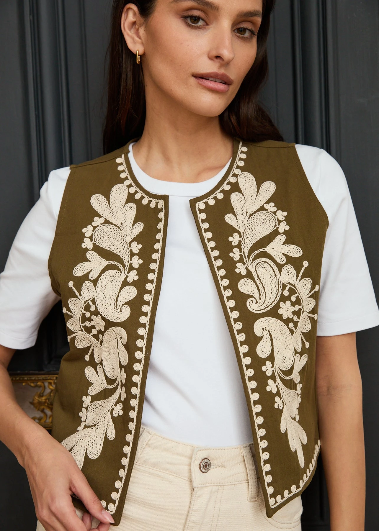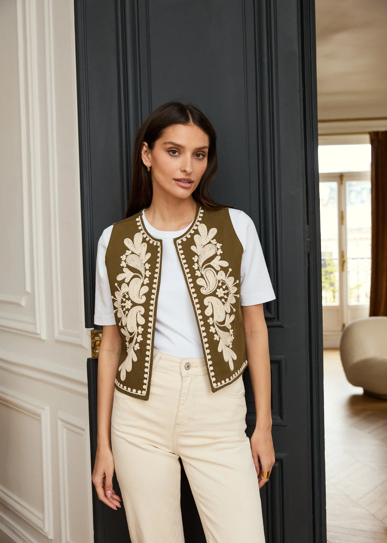 | Couleur | Kaki Ecru – Gilet Saphia |